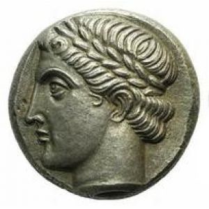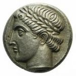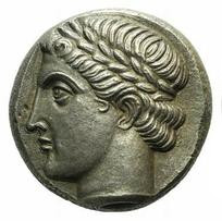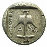 Laureate head of Apollo left, anchor with A on the left and crayfish on the right, magistrate Kleokrates.