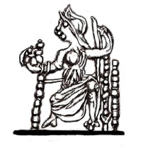 The two emperors, seated facing and holding a globe with at their feet in the center, a small branch of palm. An angel also facing (victory) flying above them.