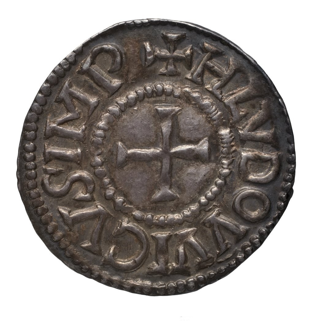 HLVDOVVICVS IMP (circular legend around a cross surrounded by a circle made up of dots, a cross between the letters P and H).