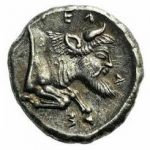 Imitation d'un didrachme frappé vers le début du V ème siècle avant Jésus-Christ. Référence: HGC 2, 363. Informations de poids et de diamètre, axe des coins: 7h, provenant de London Ancient Coins.