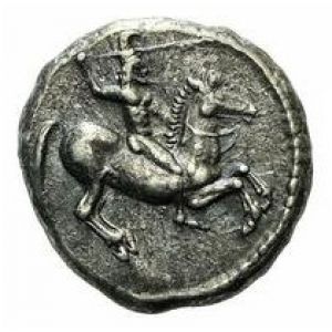 Cavalier nu et casqué, inscription revers CEΛ - A - Σ