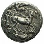Imitation d'un Tétradrachme frappé entre 466 et 460 avant Jésus-Christ, référence: HGC 2, 574. Informations de poids et de diamètre, axe des coins: 12h, provenant de London Ancient Coins.