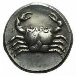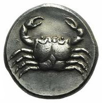 Tête d'Arethusa à gauche, crabe
