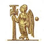 La victoire se tenant à gauche et tenant une croix avec la main droite.