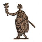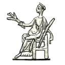 Pax assise à gauche, tenant une branche avec la main droite et un sceptre avec la main gauche.