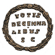 Couronne avec les mots VOTIS DECENNALIBVS au milieu en trois lignes.