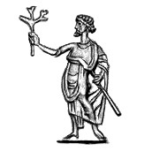 Le génie du sénat debout à gauche, tenant une branche avec la main droite et un sceptre court avec la main gauche.