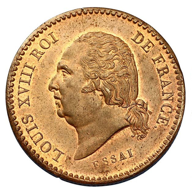 Essai en bronze de la 10 centimes (1821), Louis XVIII, diamètre 27.00 mm.